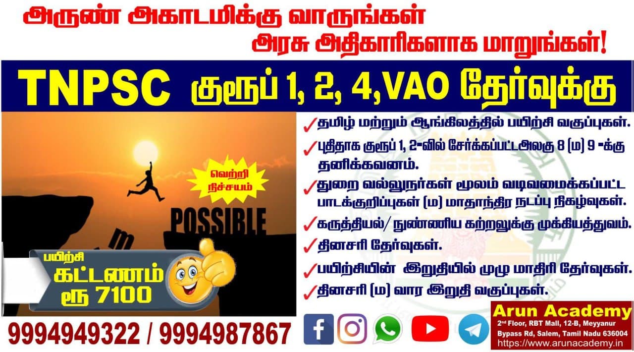 TNPSC-1, 2, 2A & 4, VAO (Tamil and English) Classroom coaching Classes Batches Details